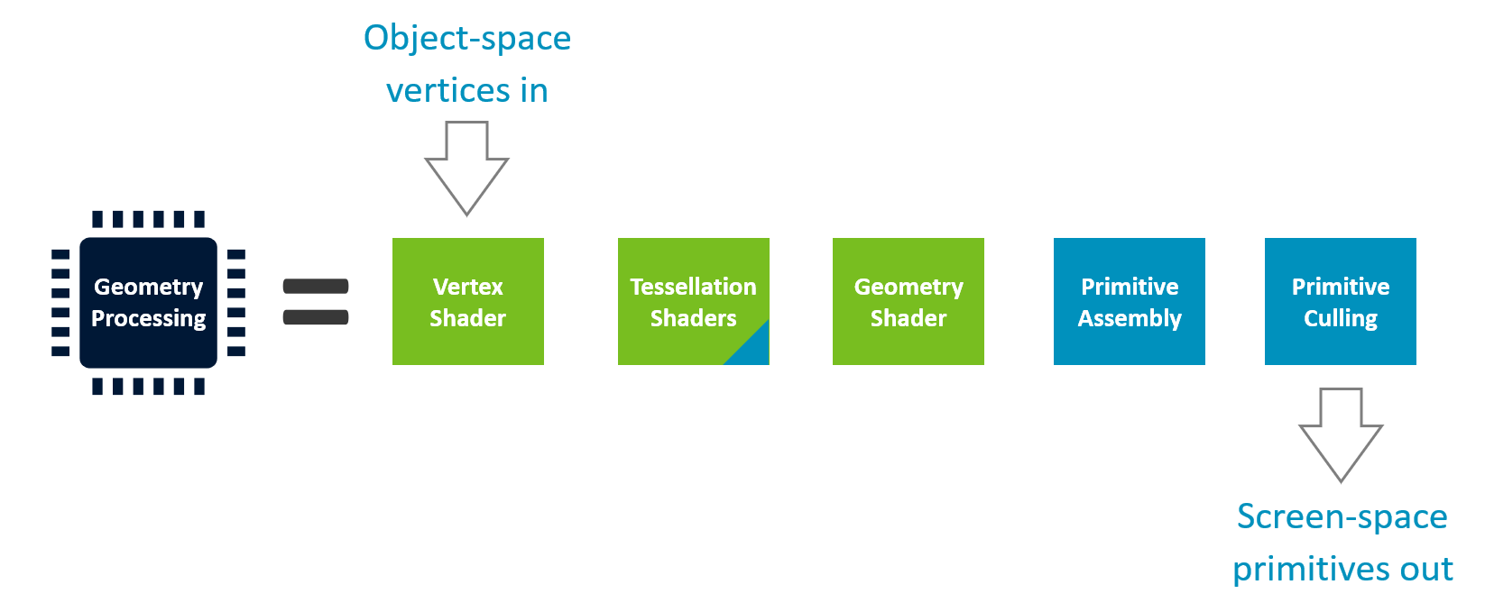 只有蓝色部分执行着色器程序,其余为专用硬件