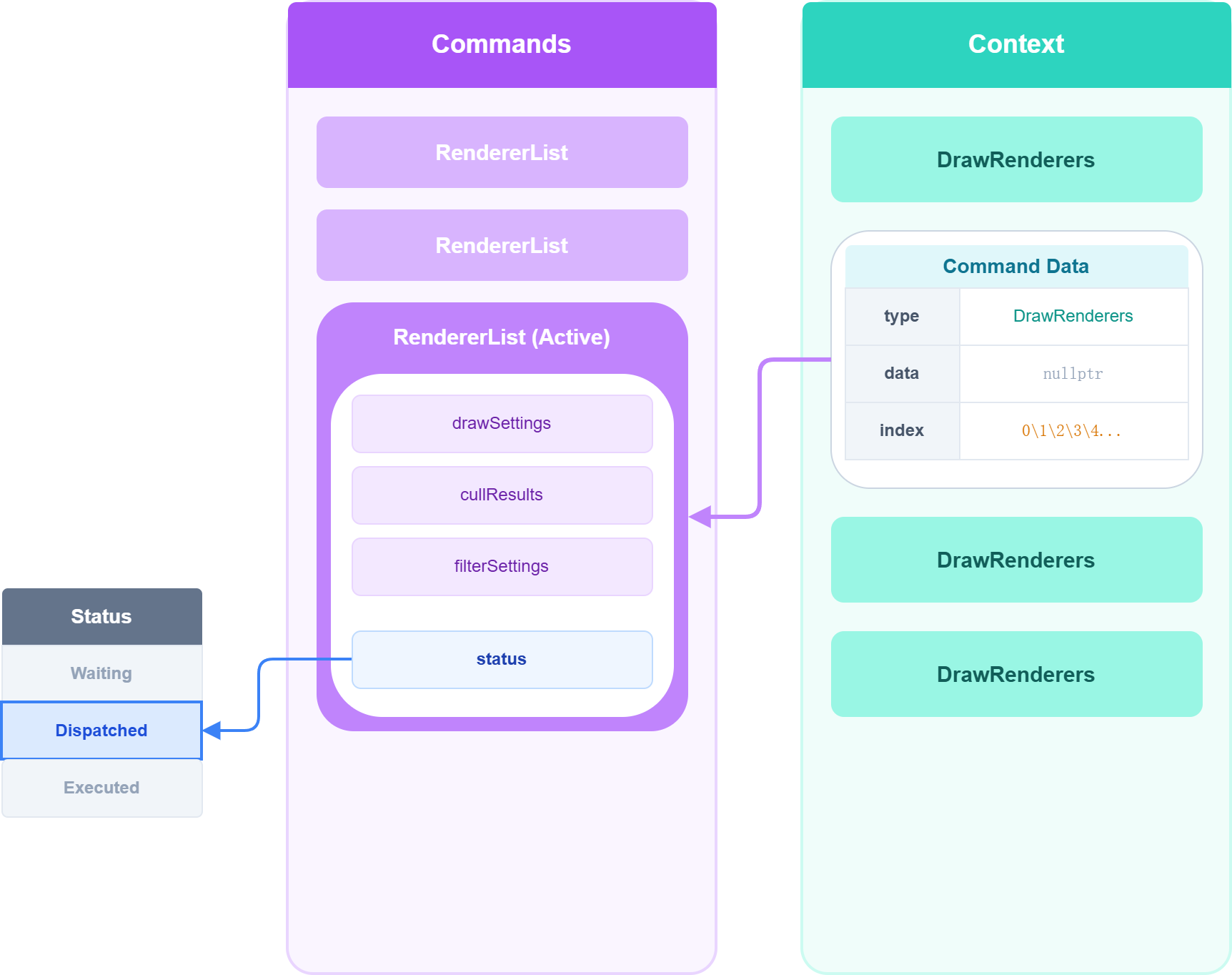 - 可视化: 对应 RenderDoc 或 Frame Debugger 中看到的 Pass 列表(如 ShadowMap Pass G-Buffer Pass Lighting Pass)。